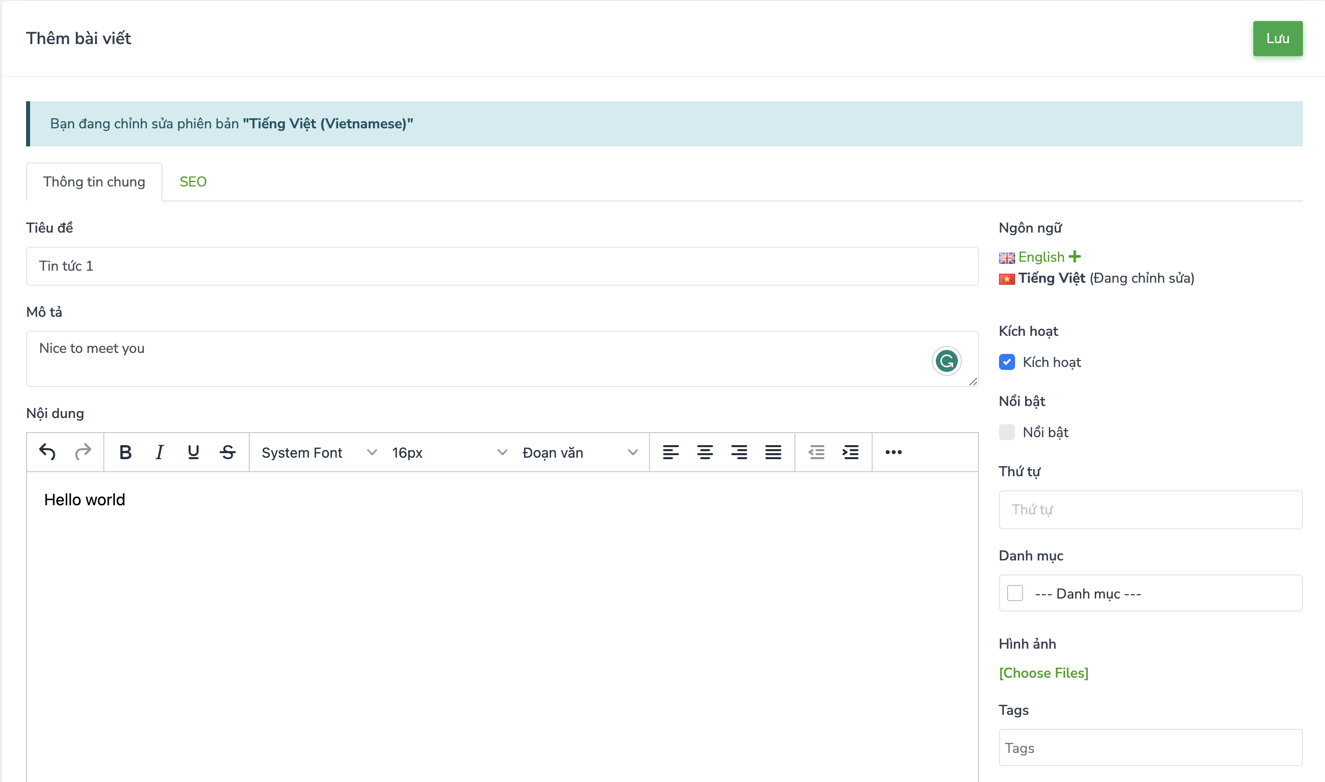 Ta reload lại trang chi tiết, lúc này không thấy nội dung của bài viết nữa là ngon lành.